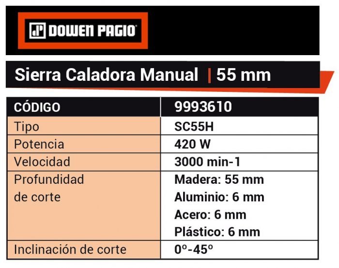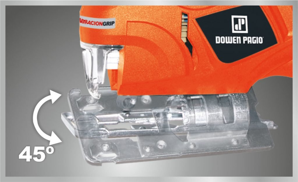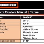 Potente motor de 420 Watts que permite realizar cortes precisos de hasta 55 milÃmetros en madrera y de 6 milÃmetros en metal y plástico.