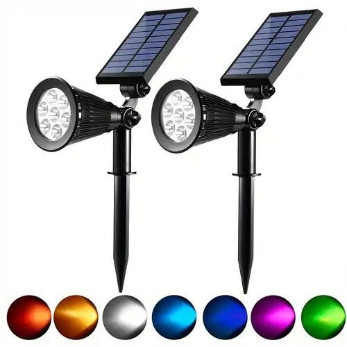 Dale vida y color a tus espacios exteriores con estos spots solares LED RGB. Se cargan durante el dÃa gracias a su panel solar integrado y se encienden automáticamente al anochecer, ofreciendo una iluminación decorativa, versátil y sin consumo eléctrico.