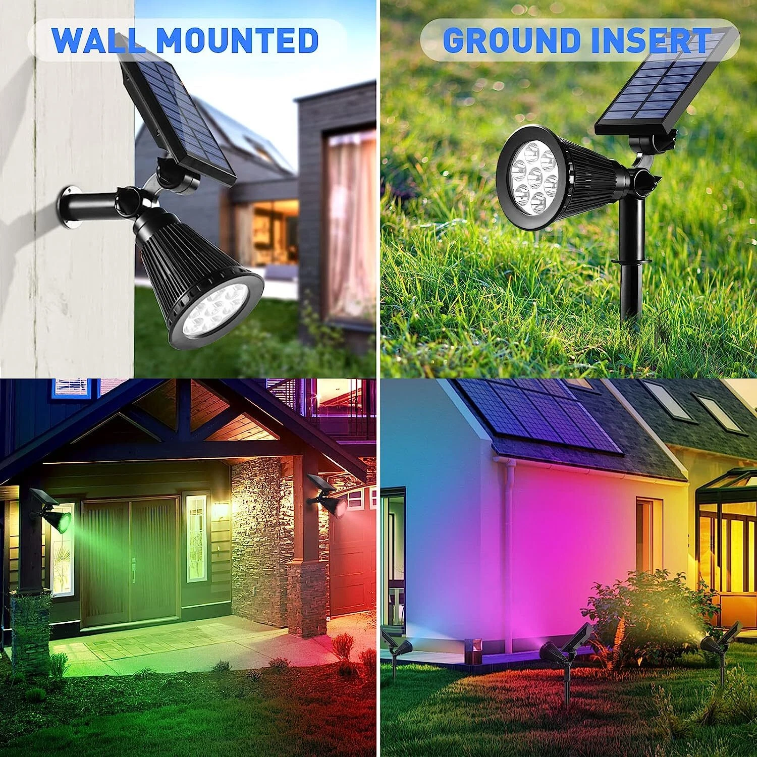 Spots LED de JardÃn con Pincho y Panel Solar – RGB Multicolor